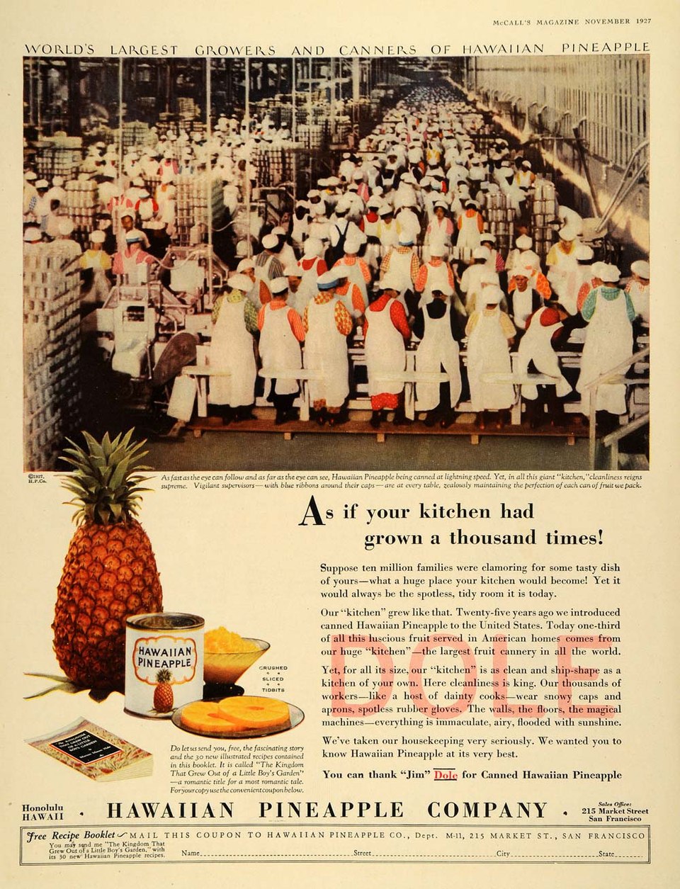 Advertisement, Dole Pineapple Company, 1927. Wikimedia Commons.